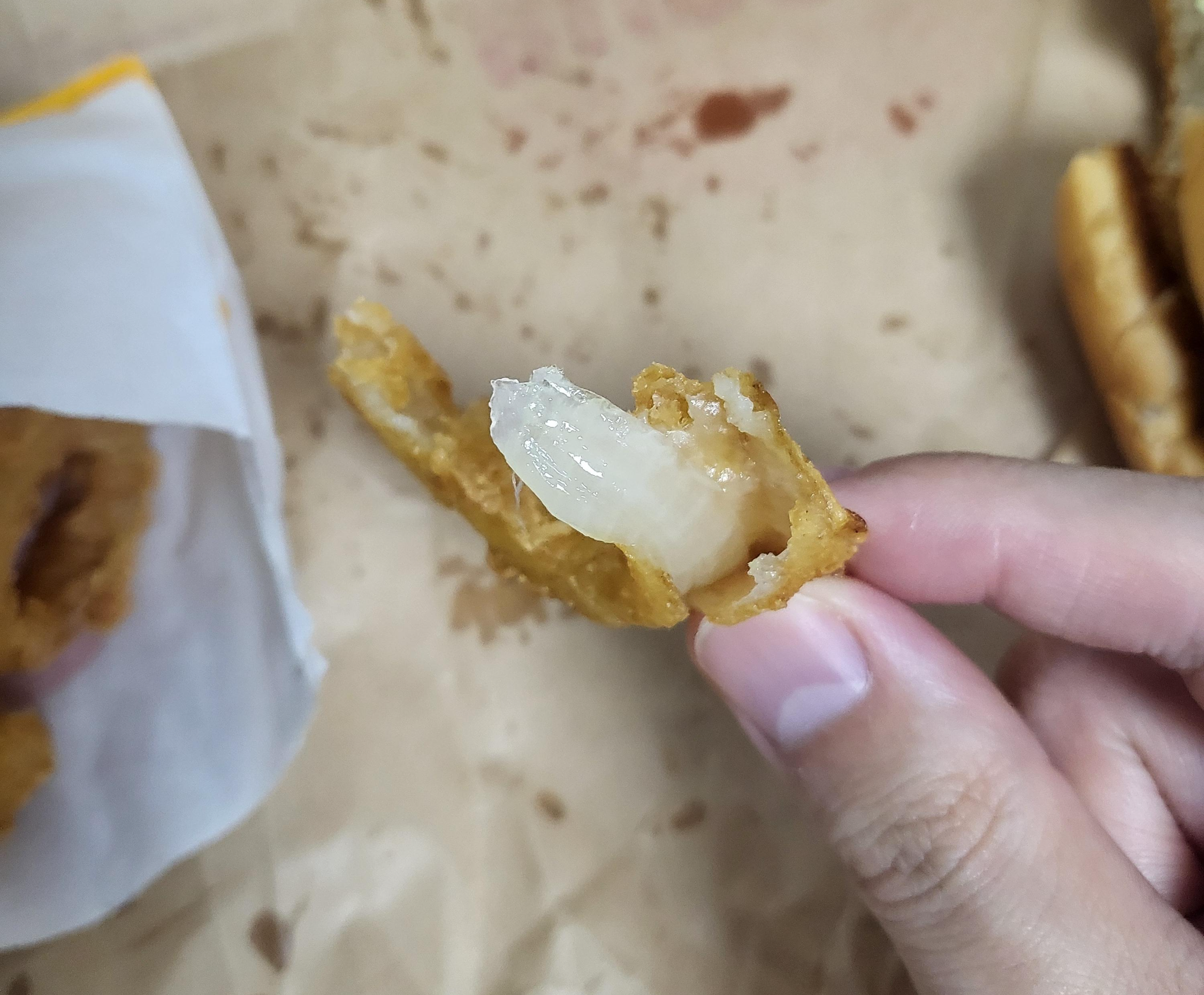 기존 어니언링은 양파와 밀가루 반죽으로 만든 도넛에 가까웠습니다. 사실 짝퉁 어니언링입니다. 그러나 리뉴얼된 어니언링은 진짜 양파를 튀긴 찐 어니언링으로 돌아왔습니다.
